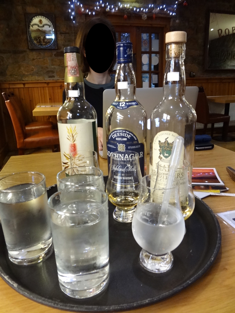 We take a short stroll around town to open the appetite. Emphasis on short: it starts raining very badly, and we call it a day, soaked. Are we smug we dipped into the Moray Firth this morning, rather than at noon, like other years? Oh! yes, we are.